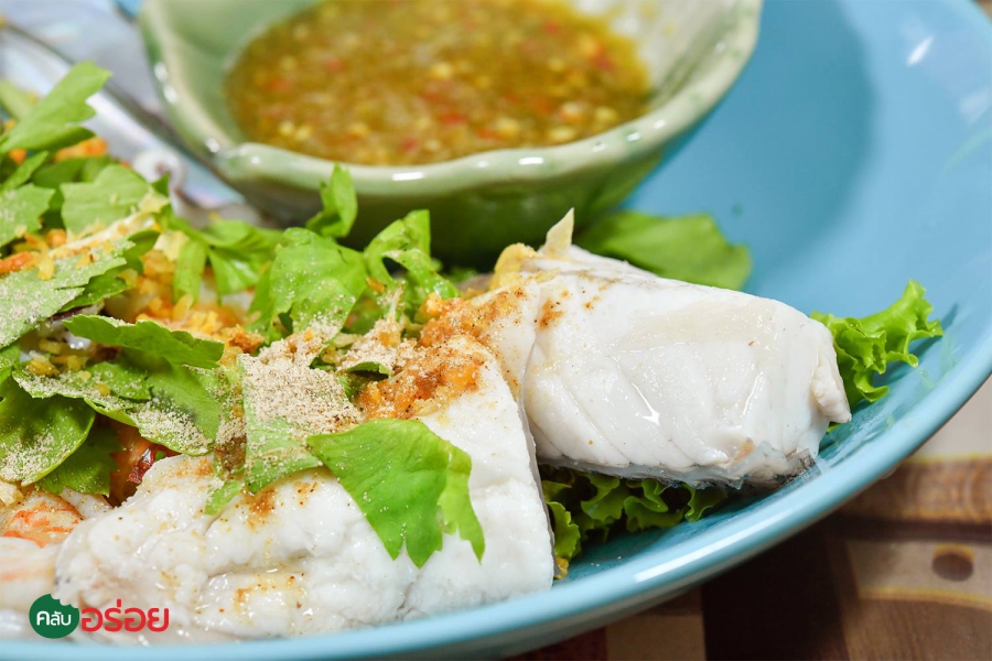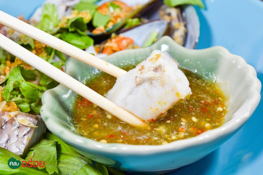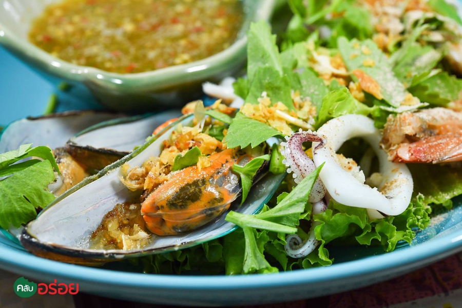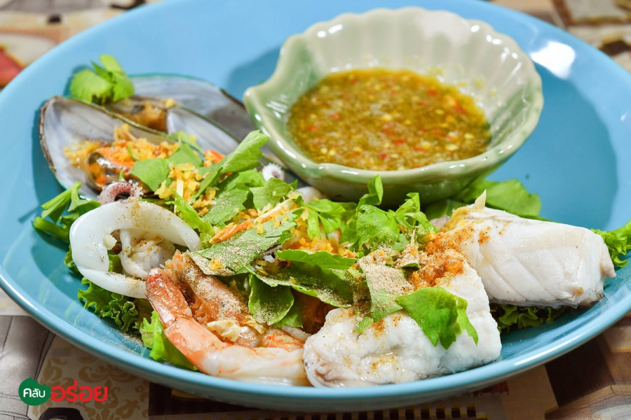 เส้นเล็กต้มยำทะเลน้ำข้น / ข้าวกุ้งอบกระเทียม / ทะเลลวกจิ้ม