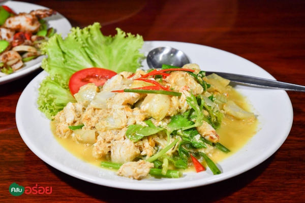 เมนูที่ห้ามพลาดเด็ดขาดคือ “ กรรเชียงปูผัดผงกะหรี่ ” ที่ใช้กรรเชียงปูก้อนโตๆ เท่านิ้วโป้งอวบๆ มาผัดเครื่องผงกะหรี่รสชาติครบเครื่อง เรียกว่าตักลงไปตรงไหนก็เจอแต่ ปู ปู และ ปู ! แถมเนื้อปู ที่นำมาผัดก็ยังเรียกว่ามีคุณภาพเกรดเอ ทั้งความสด และ กรรมวิธีการนึ่ง ที่ทำให้เนื้อปูทั้งนุ่มและเด้งสู้ฟัน แถมยังชุ่มไปด้วยความฉ่ำของน้ำแกงผัดผงกะหรี่ที่แทรกซึมเข้าไปในทุกอณูของเนื้อปู