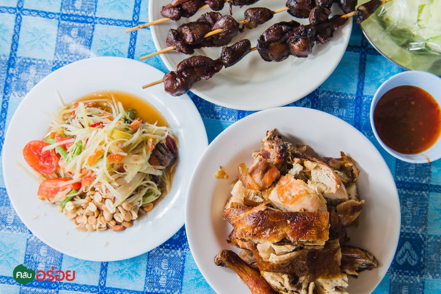 ไก่ย่างน้ำชำ / เครื่องในไก่ / ส้มตำลาว