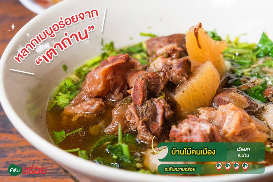 “ บ้านไม้คนเมือง ” ร้านอร่อยริมทางของชาวเวียงสา อยู่ลึกเข้าไปในซอยหลังวัดบุญยืน แต่คนแน่นขนัดผิดหูผิดตาแปลกไปจากร้านที่อยู่ในซอยลึก ช่วงเที่ยงๆ ไปจังหวะไม่ดีอาจไม่มีโต๊ะนั่งเอาได้ ที่นี่ขายอาหารหลายอย่าง เรียกได้ว่าครบเครื่องสำหรับคนแถวนั้น มีตั้งแต่ขนมจีน ข้าวซอย น้ำเงี้ยว ยัน ก๋วยเตี๋ยว ความโดดเด่นของที่นี่คือใช้หม้อดินต้มเตาถ่านในการทำอาหารทุกอย่าง ไม่ว่าจะนำแกง หรือ น้ำซุปก๋วยเตี๋ยว จึงมีความหอมกลิ่นควัน กลิ่นดิน เป็นพิเศษ โดยเฉพาะเมนูที่ต้องลองอย่าง “ ก๋วยเตี๋ยวเนื้อตุ๋น ” ที่ใช้เนื้อติดกระดูก ต้มและเคี่ยวจนเปื่อย ชนิดละลายในปากได้ ผสานกับน้ำซุปจากเต้าดินที่อร่อยขั้นเทพ ชามเดียวอาจไม่พอ ข้าวซอยเนื้อ และ ขนมจีนโดยเฉพาะแกงไก่ รสชาติเข้มข้น อร่อยถึงเครื่องพริกแกงทั้งคู่ ตั้งแต่ยังไม่ปรุง โดดเด่นที่รสชาติเผ็ดร้อน เพราะใช้ “ พริกเขา ” เรียกได้ว่าเป็นร้านที่เหมาะสำหรับการจัดหนักสำหรับมื้อกลางวันเป็นอย่างยิ่ง ที่สำคัญราคาไม่แพงเลยครับ
