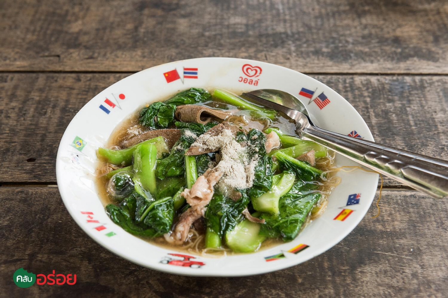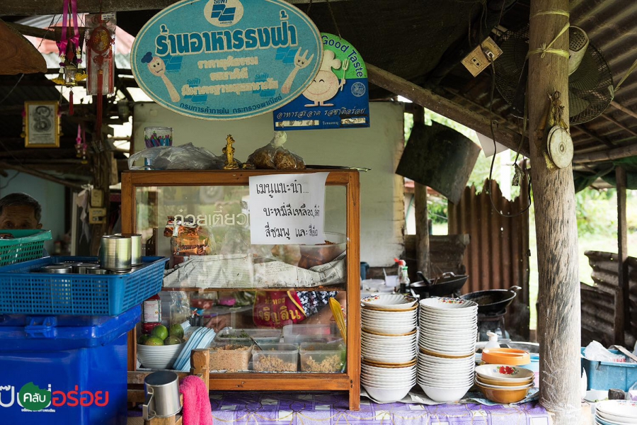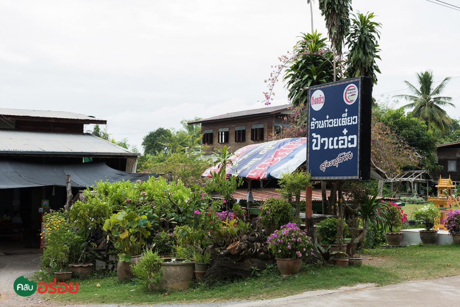 ร้านก๋วยเตี๋ยวสุโขทัยแท้ๆ แบบฉบับชาวบ้าน แม้ชื่อเสียงไม่ได้โด่งดังเหมือนร้านใหญ่ริมทางอื่นๆ แต่ถ้าว่ากันเรื่องรสชาติ “ ก๋วยเตี๋ยวสุโขทัย ” ที่นี่ คนถิ่นยืนยันเองว่าอร่อยไม่แพ้ที่ไหน ! ความโดดเด่นของก๋วยเตี๋ยวป้าแอ๋ว นอกจากจะเป็นสูตรโบราณ ใช้ถั่วฝักยาวอ่อน ถั่วลิสงป่น และหมูบะช่อสับในน้ำซุป ยังมีเอกลักษณ์เฉพาะตัวที่ “ น้ำซุปสีแดงเข้ม ” ที่เกิดจากการใช้เต้าหู้ยี้เข้ามาผสม ทำให้ได้รสชาติเปรี้ยวนำ และ หวานตามขี่กันกำลังกลมกล่อม ยิ่งถ้าอยากลองรสชาติแบบคนถิ่นจริงๆ ให้สั่ง “ ก๋วยเตี๋ยวเครื่องไทย ” เพราะจะใช้น้ำตาลปี๊ปแทนน้ำตาลทราย ความหวานจะละมุนและหอมกว่า ทานคู่กับเกี๊ยวกรอบที่ป้าแอ๋วใจดีตักมาให้พูนชาม พร้อมด้วยเครื่องเคราอย่าง หมูชิ้น ตับ และกากหมู ในราคาชามละ 25 บาท บอกได้เลยว่าแวะมาสุโขทัยครั้งใด ห้ามพลาดทุกประการ !