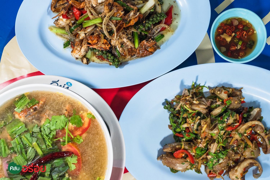 ปูนิ่มพริกไทยดำ / ต้มยำปูนิ่มน้ำใส / ผัดฉ่าปลากระบาง / ปูไข่นึ่ง / ปลากระพงทอดน้ำปลา