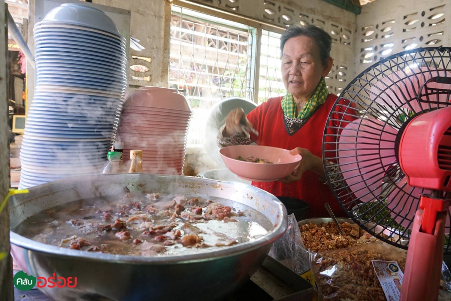เดินเข้าในร้านก็เจอ คุณแม่ค้าวัย 60 ปี ประจำอยู่หน้าหม้อก๋วยเตี๋ยว ร้านนี้เปิดมาได้ 30 ปีแล้ว เป็น ร้านเล็กๆในซอยเล็ก แต่ความอร่อยและชามก๋วยเตี๋ยวนี่ไม่เล็ก เพราะที่จุดเด่นเน้นความเยอะ เยอะทั้งปริมาณ เยอะทั้งเครื่องเคียงแบบบุฟเฟ่ กระเทียมเจียวที่นี่จะเจียวไว้เป็นกะละมังใหญ่ สามารถตักได้เลยทางร้านไม่หวงกระเทียมเจียวจ้า ผักที่นี่ทางร้านจะจัดไว้ให้หยิบจับตามความพอใจ น้ำซุปที่เคี่ยวจนได้ที่ หอมแตะลิ้นจนห้ามใจไม่ได้กันเลยทีเดียว ทีเด็ดที่ร้านต้อง เส้นเล็กเนื้อ ชามละ 40 บาท เกาเหลาเนื้อ 50 บาท แค่นี้ก็อิ่มเกินคุ้ม แล้ว