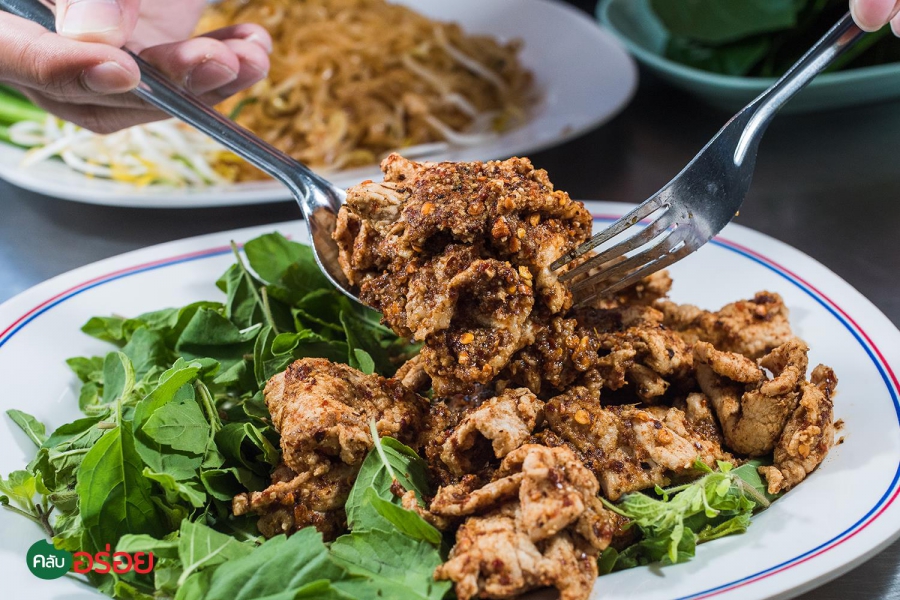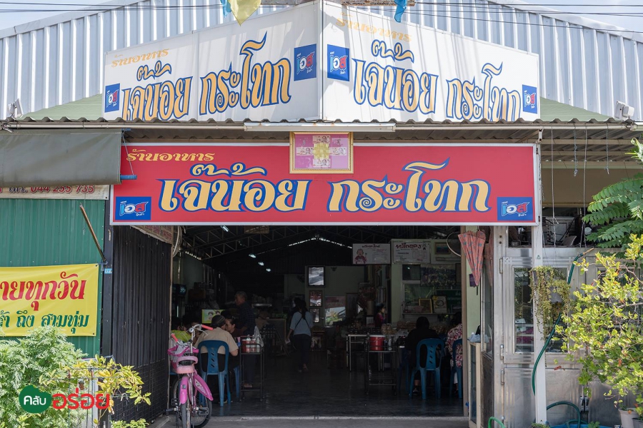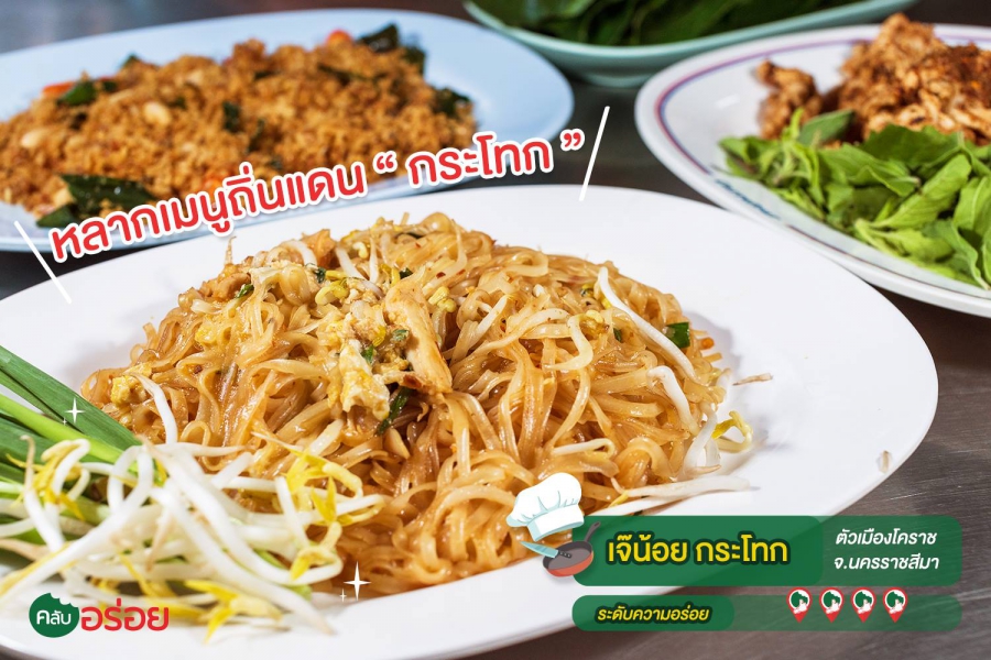 “ เจ๊น้อยกระโทก ” ร้านอาหารท้องถิ่นเจ้าเก่าแก่ประจำเมืองโคราช แขกไปใครมา ถ้าอยากรู้จักอาหารถิ่นแดนย่าโมให้ครบ เค้าว่าต้องแวะเข้าร้านนี้ เมนูขึ้นชื่อแน่นอนว่าต้อง “ ผัดหมี่กระโทก ” หรือ หมี่โคราช ที่หลายปลากยืนยันว่าเจ๊น้อยแกผัดหมี่อร่อยจริง ด้วยรสชาติที่ครบเครื่อง ไม่ต้องปรุง ! แม้จะออกหวานไปบ้าง แต่ก็เป็นเอกลักษณ์เฉพาะที่นี่ เมนูที่ต้องสั่งขึ้นโต๊ะอีกอย่าง คือ “ ปลาทูฟูผัดพริกขิง ” คล้ายๆ ปลาดุกฟูทอดกรอบ แต่ที่นี่ใช้ปลาทูทอดแห้งๆ เป็นฝอยๆ แล้วมาผัดพริกขิงสามรส หวาน เค็ม เผ็ด เสิร์ฟขึ้นโต๊ะพร้อมใบชะพลู เอาไว้ให้ห่อแบบเมี่ยงคำ ยกนิ้วให้ว่าเข้ากันดีอย่าบอกใคร ก่อนกลับเบรกรสหวานกันซักหน่อย ด้วย “ เห่าดง ” ที่ใช้หมูชิ้นลวกนุ่มๆ มาคลุกเคล้าเข้ากับพริกและข้าวคั่ว รสชาติจัดจ้าน แซบสะท้านทรวง เหมาะเป็นกับแกล้มคู่กับน้ำอัดลมเย็นๆ ซะนี่กะไร !