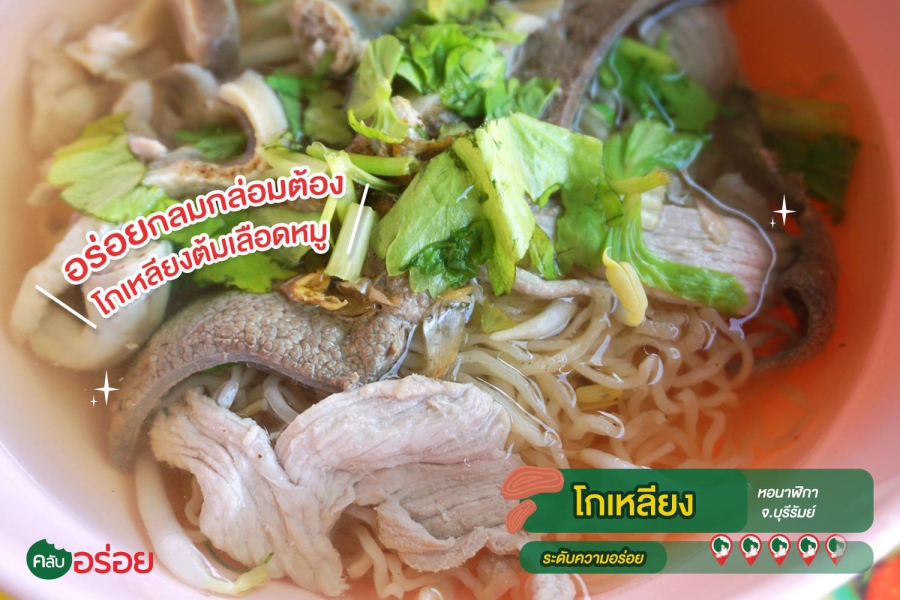 1 ในร้าน ในตำนานของอาหารเช้าคงจะหนีไม่พ้น “ร้านโกเหลียง” ที่เปิดมาเป็นระยะเวลากว่า 30 ปี ตรงหอนาฬิกา ประกันความอร่อยกลมกล่อมของร้านด้วยรสชาติ แบบว่าแค่ซดก็ต้องยกนิ้วให้ ด้วยความหอมของน้ำซุปที่เข้มข้น เมนูยอดนิยมอย่างเกาเหลาเลือดหมู คนใกล้ไกลเป็นต้องแวะเวียนมาเป็นประจำ เนื้อหมูที่สดและสะอาด บวกกับน้ำซุปที่เข้มข้นเข้ากันได้ดี เส้นบะหมี่สั่งตรงจากเยาวราช เป็นมิตรกับกระเพาะอาหารตอนเช้าๆ ได้ดีทีเดียว เส้นเล็กต้มยำที่นี่ก็จัดว่าเด็ดไม่เบาต้องลอง เพราะการันตีแล้วหลายปากจากพี่น้องชาวบุรีรัมย์ ปล. ที่ร้านมี กากหมูทำเองขาย วางไว้ที่โต๊ะ กล่องละ 20 บาท ทานกับก๋วยเตี่ยว เกาเหลา อร่อยล้ำไปเลยคะ