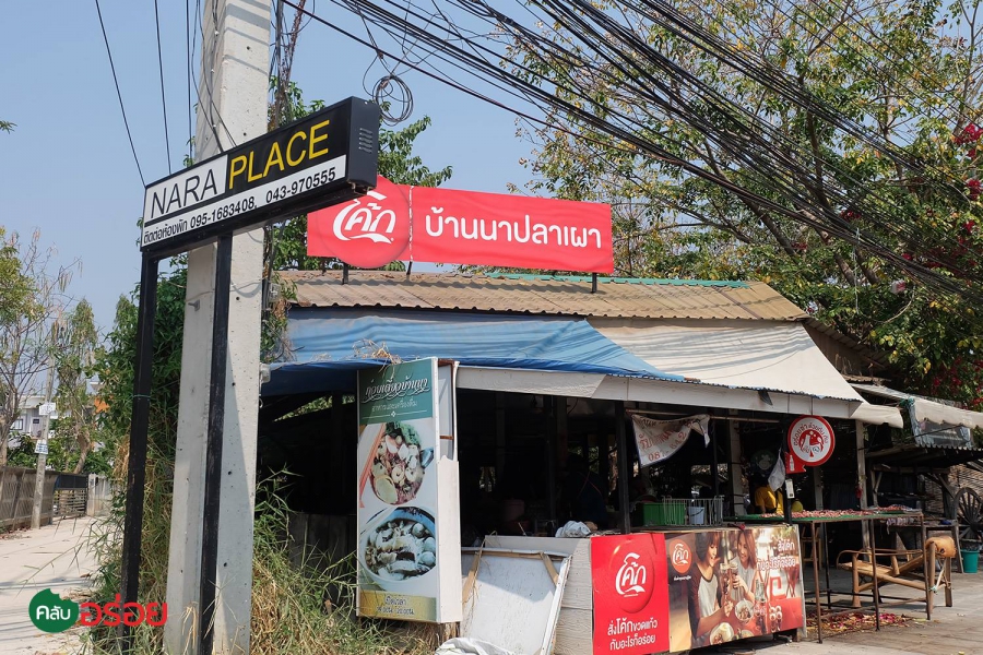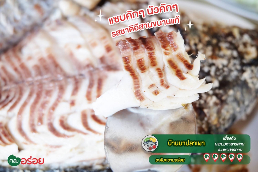 คออาหารอีสานพลาดไม่ได้ ! ร้านบ้านนาปลาเผา แค่ชื่อก็ไม่ต้องเอ่ยถึงเมนูอาหารแล้วว่าจะมีอะไรบ้าง ร้านนี้เป็นร้านขนาดกลาง ไม่มีห้องแอร์ ผู้คนเยอะโดยเฉพาะตอนเที่ยงวัน บรรยากาศ สบายๆ เหมือนชื่อร้าน พอเข้าไปในร้านก็จะมีพนักงานเข้ามาต้อนรับทักทายเป็นสำนียงอิสานบ้านเฮาพร้อมแนะนำเมนูอาหารแซบๆ ไว้ตลอดเวลา ของเด็ดที่ต้องสั่งเลย ของที่นี่ คือ “ปลาเผา” เสิร์ฟร้อนๆ พร้อมกับผักจานโตและน้ำจิ้ม 2 แบบ คือน้ำจิ้มเผ็ดและน้ำจิ้มหวาน จะหม่ำแบบเมี่ยงใช้ผักห่อปลาเป็นคำ ราดน้ำจิ้มแซ่บๆ ก็เลอค่า ปลาเนื้อแน่นๆ เจอน้ำจิ้มรสเผ็ดผสมเปรี้ยวเข้าไป อื้อหือ...อร่อยจนลืมทางกลับบ้าน!! ใครกินเผ็ดไม่ได้ก็ลองน้ำจิ้มหวานไป เซ็ตนี้มาแบบอลังการสักหน่อย ส่วนต้มปลานิลก็เด็ดแบบบ้านนาเฮาเช่นกัน สำหรับต้มปลานิลซดร้อนๆได้กลิ่นผักกะแยงผสมผักชีลาว รสชาติแซ่บลืมทุ่งและสุดท้ายเมนูขวัญใจสายดิบนั่นคือ ก้อยกุ้งที่นำกุ้งฝอยสดๆ มาก้อยแบบอิสานใส่ข้าวคั่วใส่มะกอก ปรุงรสให้แซ่บ เพียงเท่านี้ก็แซ่บโดนใจ ทานกับข้าวเหนียว รสชาติอิสานขนานแท้ต้องที่นี่เลย “ บ้านนาปลาเผา ”