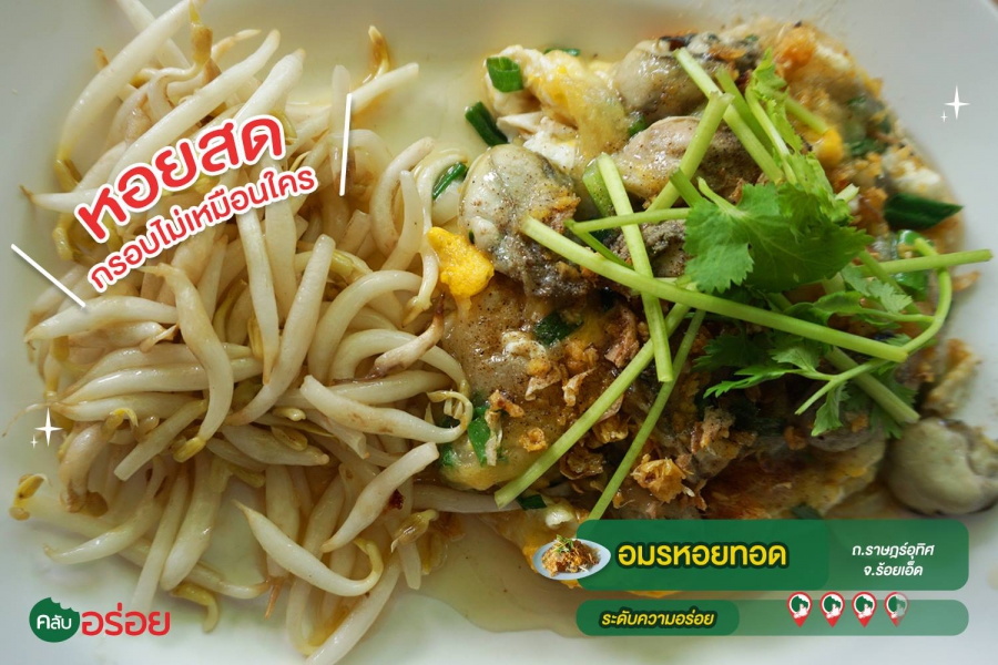 ใครมาร้อยเอ็ดแล้วอยากกินหอยทอดต้องมาที่นี่ “อมรหอยทอด ” ร้านชั้นเดียว มีที่นั่งรองรับเยอะ ขายอาหารตามสั่งและเมนูหอยทอดต่างๆ ในช่วงตอนกลางวัน แต่ถ้ามีเทศกาลงานงิ้ว ร้านนี้ก็จะเปิดให้บริการจนดึก เมนูขึ้นชื่อที่นี่คงหนีไม่พ้นประเภท “ หอย ” คือหอยทอด มีทั้งหอยแมลงภู่ และหอยนางรมให้เลือกมากมาย เอกลักษณ์ของร้านนี้ คือ หอดทอดแป้งกรอบ กรอบแบบไม่เหมือนหอยทอดทั่วไป ที่สำคัญคือไม่อมน้ำมัน ราดด้วยซอสของที่ร้าน เข้ากันไม่เลี่ยน แถมความกรอบของแป้งและความนุ่มของเนื้อหอยทีเด็ดของที่นี่เค้าเลย นอกจากนี้ยังมี ออส่วน ขึ้นชื่อ แป้งจะนุ่มนิ่มพอดี ผสมกับหอยนางรมตัวโตๆ ทานคู่กับซอสของที่ร้าน รับรองอร่อยพอดีคำ ถือว่าเป็นอีกหนึ่งทีเด็ดของเมืองร้อยเอ็ดที่น่ามาลิ้มลองกัน
