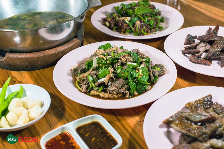 ก้อยซอย (ลาบเนื้อวัวดิบเป็นชิ้น) / ต้มเนื้อเครื่องในรวม / ย่างเสือร้องไห้