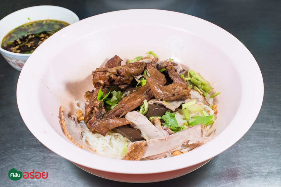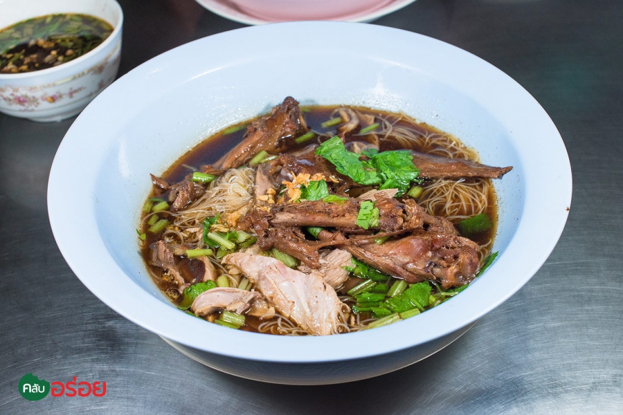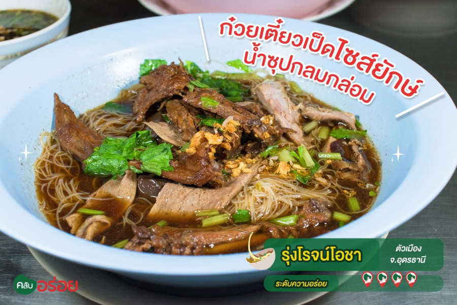 ร้านก๋วยเตี๋ยวเป็ดตุ๋นเจ้าเก่าประจำเมืองอุดร โดดเด่นด้วยน้ำซุปตุ๋นยาจีนสูตรเฉพาะของทางร้าน สีเข้ม รสชาติเข้มข้น กลมกล่อม หอมหวานน้ำซุปลงตัว แบบไม่ต้องปรุง ด้วยเทคนิคการตุ๋นน้ำเป็ดพะโล้จนหวานเข้าเนื้อ ที่เรียกว่า “ เป็ดล่อน” เป็นเป็ดฝานชิ้นใหญ่ ถ้าหิวมากแนะนำว่าให้สั่งพิเศษทุกอย่าง จะได้ชามใหญ่ ไซส์ยักษ์แบบอิ่มไปสองวัน เพราะขนขบวนมาทุกส่วนของเป็ด ทั้ง ปาก ตีน ข้อ คอ ปีก น่อง และ เลือด กินคู่กับกระเทียมเจียวแน่นๆ ผักโรย และใบขึ้นช่าย เข้ากันดีอย่าบอกใคร อิ่มแทบตาย แต่ยังอยากเบิ้ลชามสองอยู่เลยครับ :3