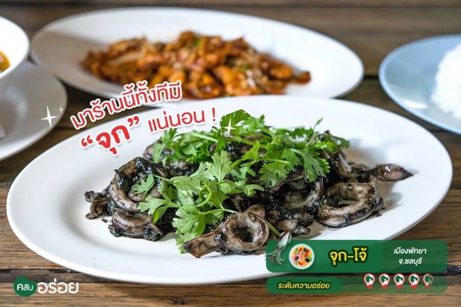 สำหรับใครที่เบื่อ..ว่ามาพัทยาทีไร ก็ต้องกินแต่อาหารทะเล ขอแนะนำร้านนี้ครับ “ จุก-โจ้ ” อาหารป่า ร้านหาง่ายตั้งอยู่แถวสี่แยกชัยพฤกษ์ บรรยากาศครึ้มไปด้วยร่มไม้ เหมือนอยู่โอเอซิสกลางสี่แยก ที่นี่เน้นเสิร์ฟทั้งอาหารป่า อาหารพื้นบ้าน และอาหารทะเล ผสมผสานกันไป จุดเด่นที่ใครต่างก็จิตใจ คือ “ ความจัดจ้าน ” ของรสชาติอาหาร ที่คงเส้นคงวาไม่เปลี่ยนแปลง ใครอยากเหงื่อออกหัวร้อนกันกลางวันแสกๆ ขอแนะนำเมนูนี้ครับ “ แกงป่าปลากุสลาด ” รสชาติเผ็ดร้อน ด้วยเครื่องแกงป่าสารพัด น้ำมีสีส้มแดงโดดเด่น มีกลิ่นหอมชวนทาน แค่เพียงซัดเข้าไปคำแรก ต้องบอกว่าแทบ สำลัก ! ทันที เพราะเผ็ดสุดชีวิต แต่ในขณะเดียวกันก็อร่อยจนสู้ขาดใจด้วยเช่นกัน ตัวปลากุสลาดมีความอร่อยและนุ่มละมุนคล้ายปลาเก๋า เรียกว่าเคี้ยวเพลินลืมเผ็ด แนะนำให้สั่ง “ ปลาหมึกผัดน้ำดำ ” มาทานตัดรสเผ็ดซักนิด เพราะจานนี้ออกหวานนำ แต่ถ้าได้เติมน้ำปลามะนาวพริกลงไป รับรองว่าจานนี้ครบเครื่องเปรี้ยว เค็ม หวาน ส่วนน้ำดำๆ นั่นไม่ต้องกลัว สิ่งนั้นคือ “ น้ำหมึก ” ของ “ หมึก ” ซึ่งทานได้แน่นอน แถมยังดีต่อระบบขับถ่าย อร่อยจัดเต็มแบบนี้ เรียกว่าไม่ให้จุกยังไงไหวล่ะครับ