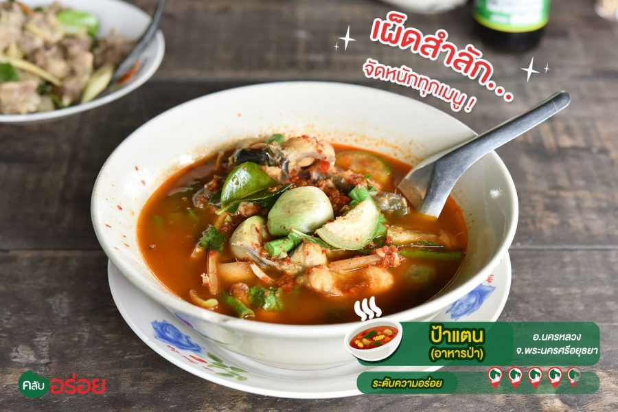 ร้านเด็ดประจำ..อำเภอนครหลวง คนที่ชื่นชอบเมนูแปลกๆ หรืออาหารป่าพลาดไม่ได้ ! เพราะร้านนี้เน้นอาหารป่าล้วนๆ มีให้เลือกหลายเมนู ทั้งนก หนู ไก่บ้าน หมูป่า ปลาดุก มีหมด ร้านเป็นเพิงเล็กๆ อยู่ ริมทาง ชาวบ้านแถวนั้นนิยมกินกันง่ายๆ จะสั่งราดข้าว จานเดียว หรือสั่งเป็นกับก็ได้ รับรองว่า...เผ็ดจัดทุกจาน รสชาติเผ็ดที่สุดอีกแห่งหนึ่งเท่าที่เคยได้ลองชิม ! ถ้าหน้าตาเป็นคนต่างถิ่น ตอนสั่งป้าแม่ครัวจะถามด้วยท่าทางทะมัดทะแมง ก่อนว่า.. เอาเผ็ดแบบคนที่นี่เลยมั้ย ? ซึ่งถ้าตอบ “ SAY YES ! ให้เตรียมใจไว้เลยว่า “ เผ็ดตาย ” แน่นอน แค่เห็นสีก็ขนลุก เมนู “ ผัดเผ็ดนก ” ก็เด็ด สับมาทั้งตัวพร้อมกระดูกให้เคี้ยวแบบกรุบๆ พร้อมรสชาติเผ็ดร้อนตามสไตล์ภัตตาคารบ้านทุ่ง ดับเผ็ดร้อนด้วยเมนู “ ไก่บ้านรวนเค็ม ” สั่งเป็นออเดิร์ฟ ก็ทานเล่นได้เลย ไก่บ้านจะมีเนื้อเหนียวเคี้ยวเพลินๆ แทะมันส์ๆ รวนให้หอมเครื่องสมุนไพร รสชาติเค็มกำลังดี ส่วนเมนูเผ็ดเรียกพี่ต้องยกให้ “ แกงป่าปลาดุก ” ซดน้ำคำแรกถ้าไม่ระวังให้ดีอาจถึงขั้น “ สำลัก ” เอาได้ รสชาติเผ็ดร้อนโดดเด่นไม่เหมือนที่อื่น ทั้งจากพริกตำหรือเครื่องเทศที่ป้าแกโขลกมาให้แบบไม่ยั้ง ทำให้แกงป่าชามนี้ ทั้ง “เผ็ดเร็ว เผ็ดแรง และเผ็ดซึมลึก ” แนะนำให้สั่งเมนูอื่น มาทานคู่กันเพื่อตัดรสชาติเผ็ดร้อน เช่น ไข่เจียวหมูสับ ถึงจะพอกินกันต่อไหว แต่ถ้าใครสายกินเผ็ดก็จัดไปรับรองว่าประทับใจไม่รู้ลืมครับ !