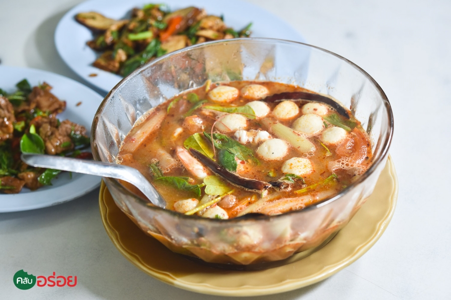 ร้านดังต้นตำรับเมนู “ เนื้อใบมะกรูดและหมูใบมะกรูด ” เจ้าแรกของอยุธยา ดังจนเปิบพิสดารมาชิม ขายมาหลายสิบปี ตั้งแต่รุ่นแรกจนตอนนี้รุ่นสามกันแล้ว หน้าตาของเมนูนี้คล้ายๆ กับ ผัดกะเพรา แตกต่างตรงที่ใช้เนื้อผัดกับใบมะกรูดแทน เทคนิคอยู่ที่ใช้ไฟกำลังดี ทำให้เนื้อมีความนุ่ม อร่อย และหอมมาก รสชาติเข้มข้นออกเค็มนำ เคล้าไปด้วยกลิ่นหอมๆ และความเผ็ด ของใบมะกรูด เสิร์ฟพร้อมข้าวสวยร้อนๆ อร่อยดีทีเดียว เมนูต้มยำของที่นี่ก็อร่อย ใช้ลูกชิ้นปลากรายเนื้อแน่นๆ น้ำต้มยำเข้มข้น ออกหวานนำ และที่สำคัญเผ็ดมาก เป็นต้มยำกุ้งที่ใส่สายบัวมาด้วย ที่พลาดไม่ได้อีกเมนูคือ “ผัดเต้าหู้ดำต้นหอมขึ้นฉ่าย ” เห็ดนุ่มและหอมมาก รสชาติที่ผัดมาเข้มข้น เหมาะที่จะสั่งมาเบรกรสอันร้อนแรงของสองเมนูแรกครับ