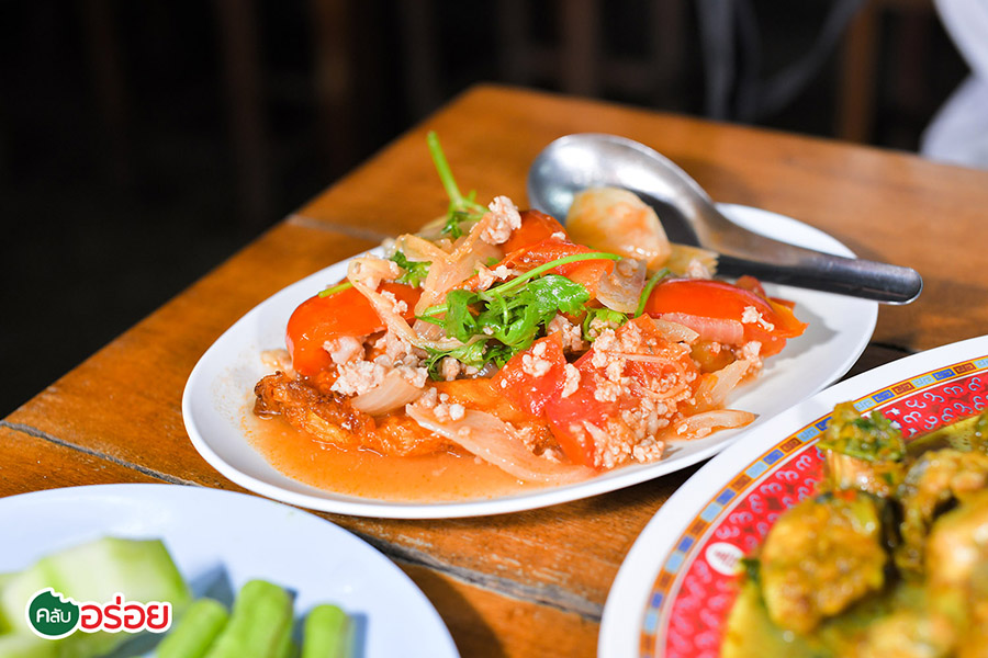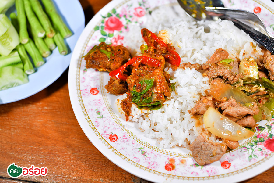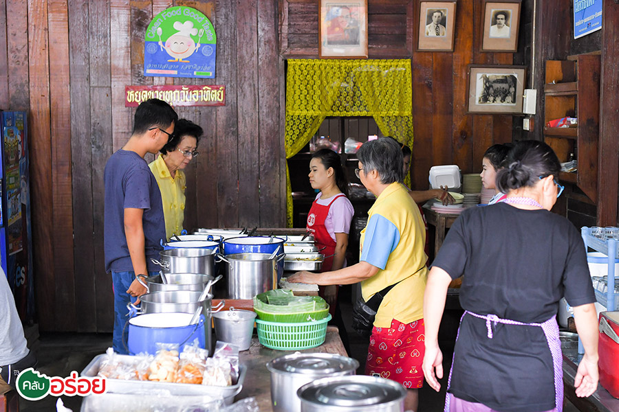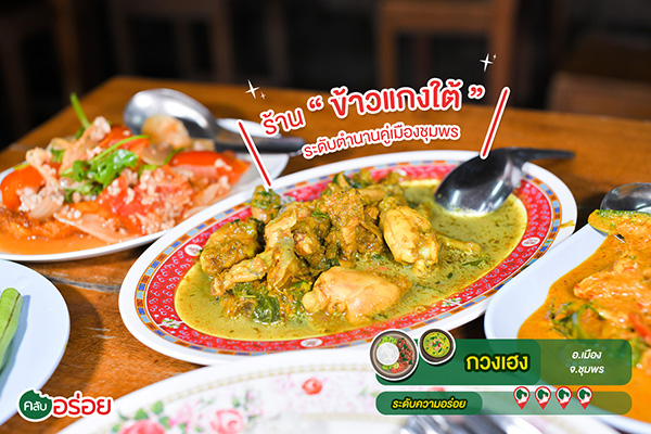 ร้านข้าวแกงเก่าแก่หลายชั่วอายุคน.. ในตัวเมืองจ.ชุมพร ที่นี่มีแกงให้เลือกหลายอย่าง ทั้งแกงใต้และกับข้าวสารพัดอย่าง ในบรรยากาศบ้านไม้สองชั้นโบราณ จุดเด่นคือ แกงใต้รสชาติถึงเครื่อง อร่อยครบรส เพราะที่ร้านทำเครื่องแกงเอง กับข้าวแต่ละอย่างจึงไม่มีกั๊ก ไม่มีหวงเครื่องแกง สังเกตได้จากความข้นและสีของน้ำแกงที่ข้นคลั่กจัดเต็มมาในแต่ละเมนู โดยเฉพาะจานเด็ดจำพวกแกงเผ็ด เช่น “ ผัดเผ็ดกบ ” รสชาติเข้มข้น “ ซี่โครงหมูผัดเครื่องแกง ” หอมกระเทียมพริกไทยจากซี่โครงหมูเคล้ากับกลิ่นหอมๆ ของเครื่องแกงอย่างลงตัว “ หมูกะปิสะตอ” และ “ พะแนงหมู ” อีกสองจานเด็ด เผ็ดร้อนเครื่องแกงและสมุนไพรถิ่นใต้อย่างกระชายโดดเด่น ที่นี่ยังขึ้นชื่อเรื่องขนมจีนน้ำยาที่แขกไปใครมาเป็นต้องสั่งมากินคู่กับสารพัดผักถิ่นใต้ที่ทางร้านบริการจัดให้ไว้บนโต๊ะ ก่อนกลับ อย่าลืม ! สั่งขนมหวานปิดท้าย ที่นี่มี “ ข้าวเหนียวทุเรียน ” อร่อยๆ ไว้ดับกลิ่นคาว แถมยังราคาไม่แพง เคียงคู่กับขนมหวานอื่นๆ อีกเพียบ แต่ละวันจะมีเมนูไม่ซ้ำกัน เดินไปดูในหม้อก่อนแล้วค่อยสั่งนะครับ !