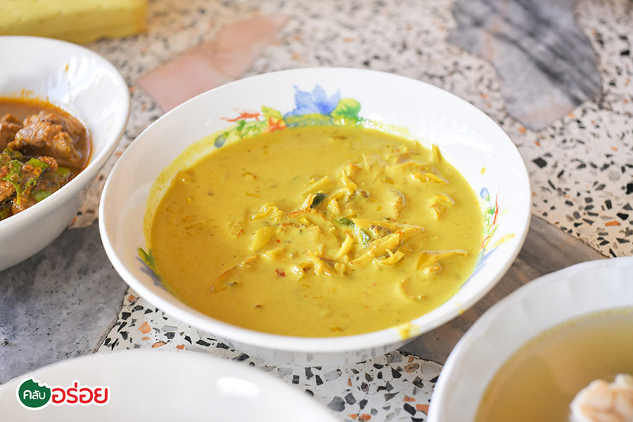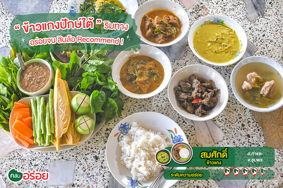 ขึ้นชื่อลือชาในหมู่สิบล้อและนักเดินทางสายล่องใต้.. ว่านี่คือพิกัดที่ไม่ว่าจะอย่างไรก็ไม่ควรพลาด หากอยากทานข้าวแกงใต้รสแท้ๆ ร้านตั้งอยู่ริมถนนเพชรเกษมในสไตล์เพิงลูกทุ่ง หน้าร้านเรียงรายไปด้วยรถสิบล้อ-รถขนของที่แวะเวียนกันเข้ามาชิมอย่างไม่ขาดสาย เห็นมีเมนูให้เลือกไม่มากแต่รับประกันว่า จัดหนัก จัดเต็ม เน้นๆ ทุกหม้อ เพราะแค่ชะโงกหน้าดูแกงในหม้อ ก็เห็นแววของความอร่อย น้ำแกงข้นคลั่ก สีสันจัดจ้านบอกถึงความเผ็ด กลิ่นหอมๆ บ่งบอกถึงความเข้มข้นของเครื่องแกงที่หาไม่ได้ที่ไหน ขอแนะนำ “ คั่วกลิ่งซี่โครงหมู ” แบบน้ำขลุกขลิก รสชาติเผ็ดร้อน กลิ่นหอมๆ ของ พริกไทยดำผสานเป็นหนึ่งเดียวกันกับเครื่องแกงใต้แท้ๆ ชามนี้เผ็ดมาก แต่ลงตัว ! “ แกงเผ็ดกะทิหนังวัว ” ใช้หนังวัวที่ผ่านทั้งการเผาและการต้ม มาแกงกะทิรสชาติเข้มข้น ตัวหนังวัวมีกลิ่นคล้ายๆ หมูป่า น้ำแกงหอมละมุนกลิ่นกะทิแท้ๆ “ หัวหมูผัดพริกไทยดำ ” อีกหนึ่งจานเด็ด ถึงเครื่องพริกไทยดำแบบไม่ต้องมีคำบรรยาย “ แกงไตปลาปลาย่าง ” แกงไตปลาสูตรใส่กะทิ พร้อมด้วยผักสมุนไพร ข่า ตะไคร้ น้ำแกงทั้งข้นและหอมโดดเด่น ความมันของกะทิและรสชาติเผ็ดเค็มแบบถึงเครื่องของน้ำพริกแกงไตปลาเข้ากันดีอย่างเป็นปี่เป็นขลุ่ย ชามนี้ขอแนะนำเพราะว่าหาทานได้ยาก และสุดท้ายที่ห้ามพลาดเด็ดขาด คือ “ น้ำพริกกะปิ ” สูตรเปรี้ยวและเผ็ดจี๊ดจ๊าด รสชาติครบเครื่อง จัดจ้านไม่เหมือนที่ไหนเพราะใช้ส้มจีนเป็นส่วนประกอบ รวมถึง “ ยำไตปลา ” ที่ใช้น้ำแกงไตปลาหอมๆ เค็มปะแล่มๆ มายำกับ ข่า ตะไคร้ ทานคู่กับผักถิ่นใต้หลายๆ ชนิดที่ทางร้านใส่ตะกร้าเตรียมไว้ให้เพียบ ! นับว่าเป็นอีกร้านที่ควรค่าแก่การแวะชิมหากผ่านไปทางชุมพรครับ