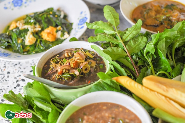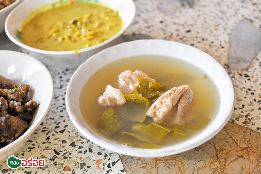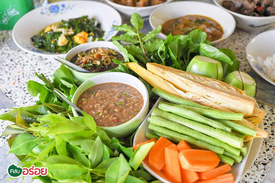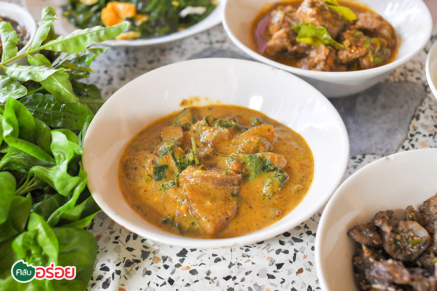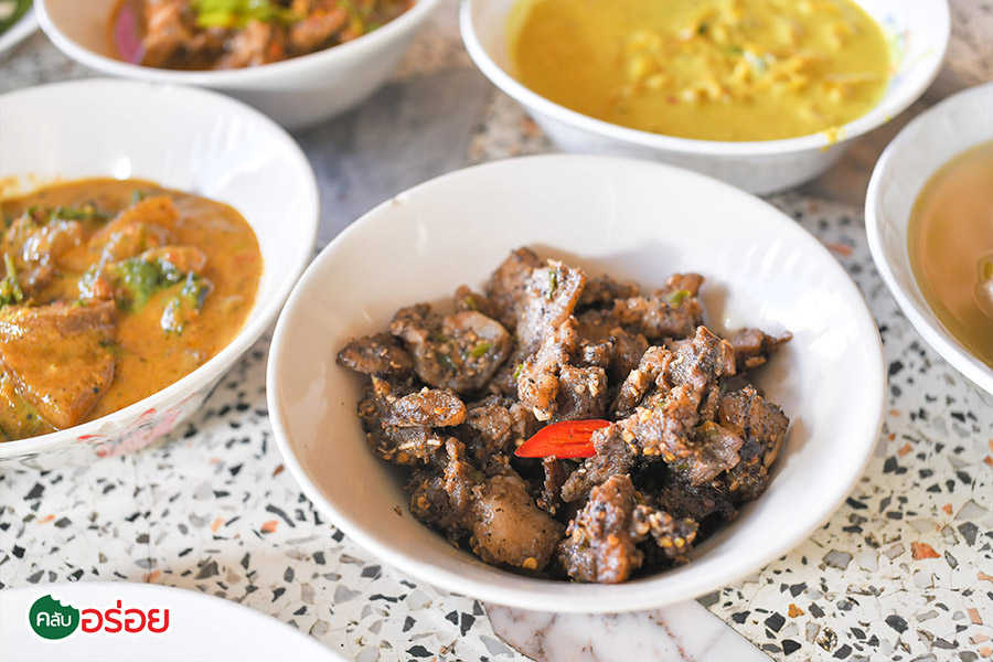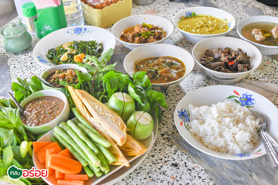 คั่วกลิ้งซี่โครงหมู / หัวหมูพริกไทยดำ / ใบเหลียงผัดไข่ / แกงไตปลาปลาย่าง / แกงเผ็ดกะทิหนังวัว / ต้มขาหมูใบชะมวง / ยำไตปลา / น้ำพริกกะปิ