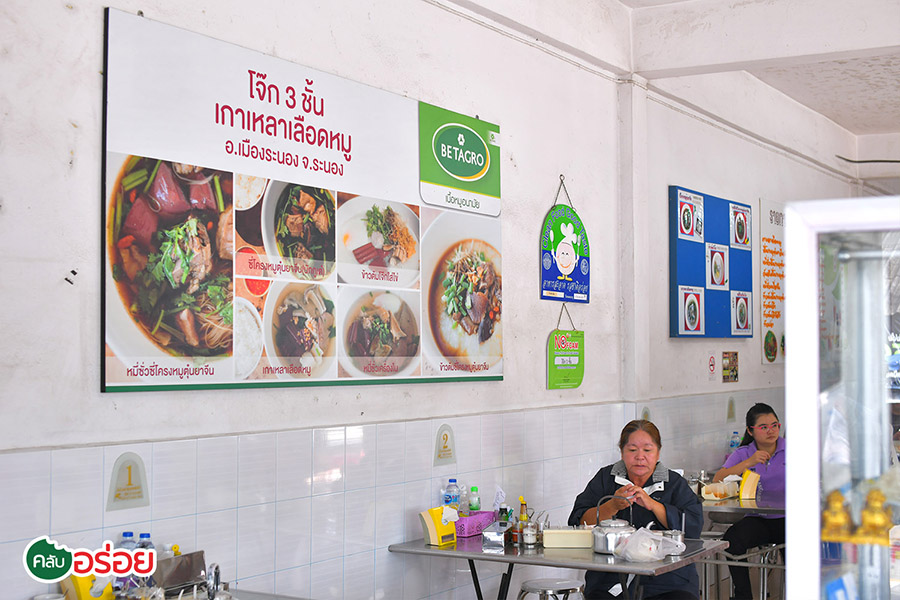 ร้าน “ โจ๊ก ” ที่ไม่ได้มีดีแค่โจ๊ก ! และไม่ได้เกี่ยวอะไรกับหมู 3 ชั้น เหตุที่ชื่อว่า “ โจ๊ก 3 ชั้น ” ก็เพราะร้านตั้งอยู่ใกล้กับโรงแรมรัตนสิน โรงแรมเก่าแก่ใจกลางเมืองที่เป็นตึกขนาด 3 ชั้น หากถามร้านอาหารเช้าที่คนระนองนิยมกันมากที่สุด แน่นอนว่าร้านนี้ต้องติดโผด้วยแน่นอน นอกจากโจ๊กอุ่นๆ โดดเด่นที่ใช้ข้าวเม็ดใหญ่ นุ่มละมุนคล้ายๆ กับข้าวต้มแล้ว “ ต้มเลือดหมู ” ของที่นี่ก็อร่อยไม่แพ้ใคร น้ำซุปใสๆ หอมกรุ่นกลิ่นน้ำต้มกระดูก และพริกไทยป่นสดใหม่ทุกวัน รสชาติหวานนิดๆ ไม่หนักเค็ม ซดได้คล่องคอ เครื่องในนุ่มละมุน ไม่เหม็นคาว อีกหนึ่งเมนูเด็ดคือ “ ข้าวต้มซี่โครงหมูตุ๋นยาจีน ” ลูกครึ่งระหว่างข้าวต้มกับบะกุ๊ดเต๋ ขอเรียกว่าเป็น บะกุ๊ดเต๋ใส่ข้าวสวย กลิ่นหอม รสอร่อย กลมกล่อมดีทีเดียว เคล็ดลับคือ บะกุ๊ดเต๋หรือน้ำหมูตุ๋นของที่นี่จะใช้อ้อยสดมาต้มและปรุงรสจนอร่อย ผสานกับเครื่องยาจีนแท้ๆ รสชาติจึงหอมหวานเป็นเอกลักษณ์ โดยโครงหมูต๋นเครื่องยาจีนจะปรุงเพียงวันละหม้อและหมดวันต่อวันเท่านั้น เมนูสุดท้ายที่ห้ามพลาดคือ “ หมี่ซั่วซี่โครงหมูตุ๋นยาจีน ” แปลกตรงที่.. ที่นี่จะใส่ “ เส้นหมี่ซั่ว ” ลงไป แล้วทานพร้อมๆ กัน คล้ายก๋วยเตี๋ยว น้ำซุปหอมกลิ่นเครื่องยาจีน กระดูกหมูหอมฟิน นุ่มร่อนจากกระดูก อร่อยชื่นใจ ฟินสุดๆ เมื่อได้ทานยามเช้า เพราะสบายท้องกำลังดี ไม่จุกแน่นจนเกินไปครับ