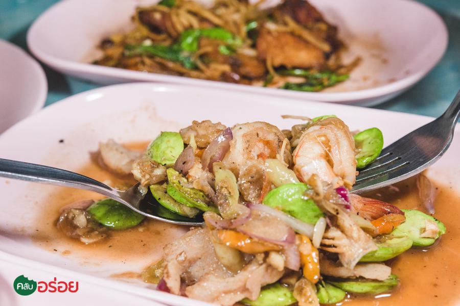 เมนูที่ทีทีมงานชอบมากคือ “ สะตอผัดกะปิ ” ผัดออกมาน้ำขลุกขลิก รสชาติอร่อยเหลือเกิน เข้มข้นถึงเครื่อง เผ็ดนำ เค็มอ่อนๆ จากะปิตามมา และมีรสชาติหวานช่วยส่งปลายๆ หอมทั้งกลิ่นสะตอ ที่มาคู่กับกลิ่นกะปิและกลิ่นกระทะไม่มีตก โดดเด่นเป็นเอกลักษณ์ หรือ “ เมนูห่อหมกทะเลทอด ” ที่โดดเด่นด้วยการทอดจนเคี้ยวหนึบ กัดสนุกเหลือเกิน เมนู “ ปลาผัดเต้าเจี้ยว ” ที่นอกจากจะผัดจนหอมฉุย กลิ่นเต้าเจี้ยวและกลิ่นกระทะ ปลาก็ยังทอดสดใหม่ ชนิดที่ว่า เสิร์ฟถึงโต๊ะก็ยังร้อนและกรอบอยู่ ไม่ได้ทอดค้างทิ้งไว้