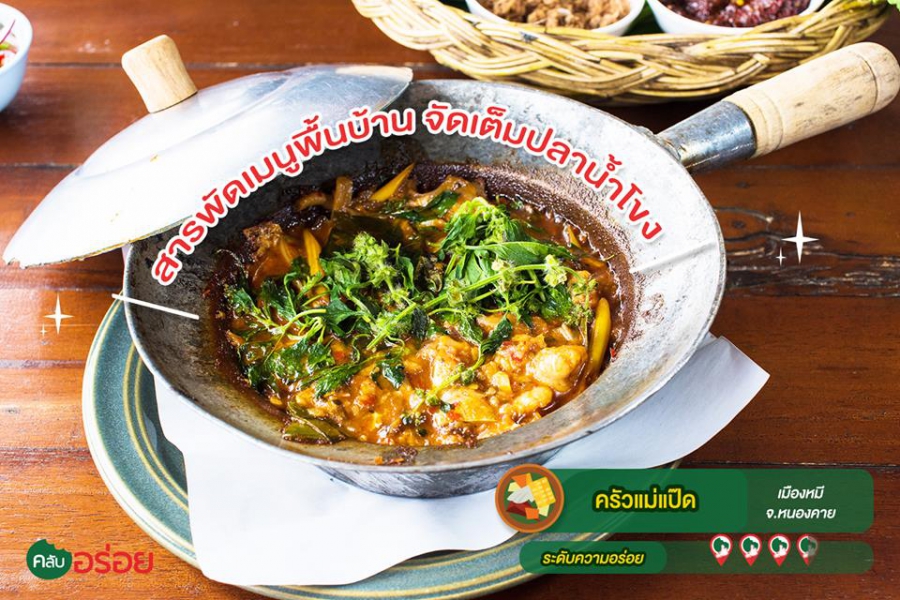 Mega Store ของอาหารพื้นบ้านอีสาน และเมนูปลาแม่น้ำโขง แห่งจังหวัดหนองคาย ใครไม่อยากไปเคาะประตูหาทีละร้าน แนะนำให้มาที่นี่ “ แม่แป๊ด ” แม่ครัวอีสาน ตั้งร้านใหญ่ อยู่ริมโขง วิวดี ลมโกรก เย็นสบาย เมนูที่ทุกโต๊ะต้องสั่งคือ “ กุ้งทอดแพ ” ที่ใช้กุ้งสดๆ ทุกวันจากริมแม่น้ำโขง ทอดกรอบๆ เป็นแพไซส์ยักษ์ ด้วยน้ำมันใหม่ๆ กรอบ แห้ง ไม่อมน้ำมัน ทั่วกันทั้งแพ อีกเมนูที่ Recommend คือ “ หมกพุงปลาน้ำโขง “ รสชาติเข้มข้น และน้ำพริก 3 สหาย อย่าง แจ่วข่าปลาย่าง, ปลาร้าทรงเครื่อง และ ตาแดงทานคู่กับผักพื้นบ้าน ใครชอบปลาก็สั่งได้ตามอัธยาศัย เพราะที่นี่มีปลาทุกชนิด เท่าที่จะหาได้จากแม่น้ำโขง เช่น ปลาดอกแก้ว ปลาเนื้ออ่อน ปลานิล ปลาบู่ ปลากระพง มีหมด เอามาทำเป็นเมนูได้สารพัด จัดเต็มทุกจานครับ