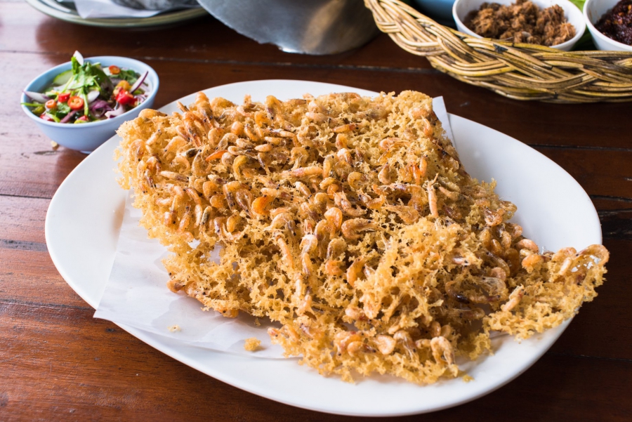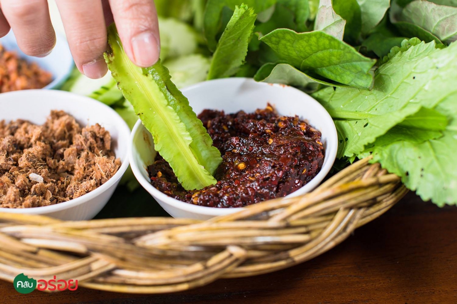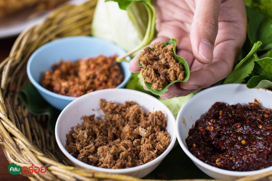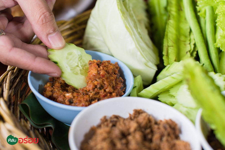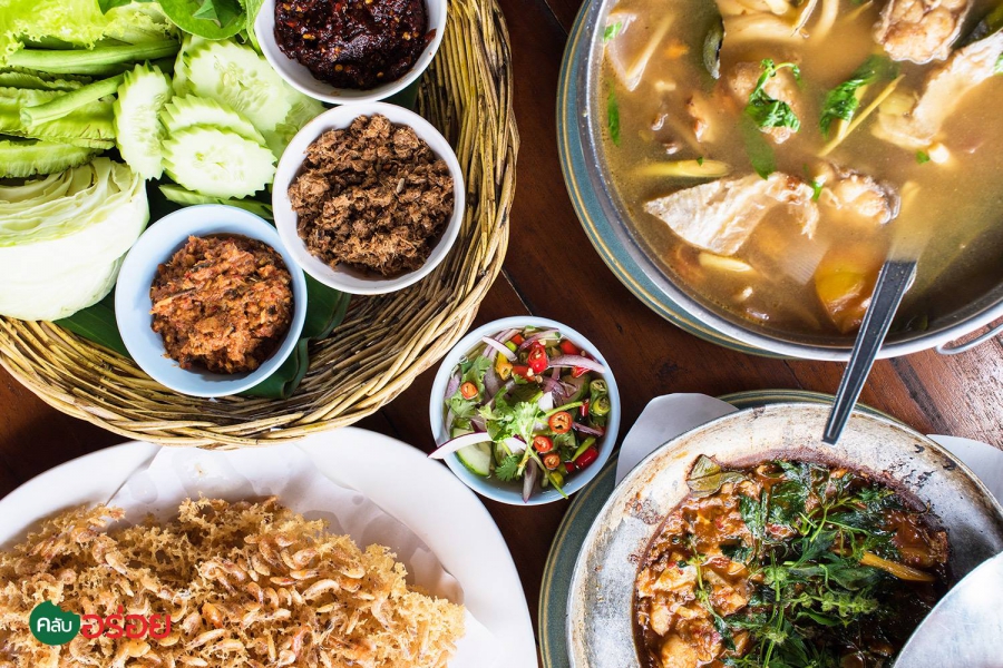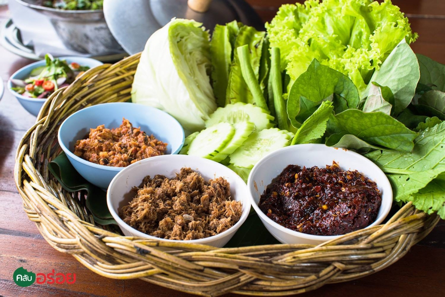 กุ้งทอดแพ / หมกพุงปลาน้ำโขง / น้ำพริก 3 อย่าง + ผักสด