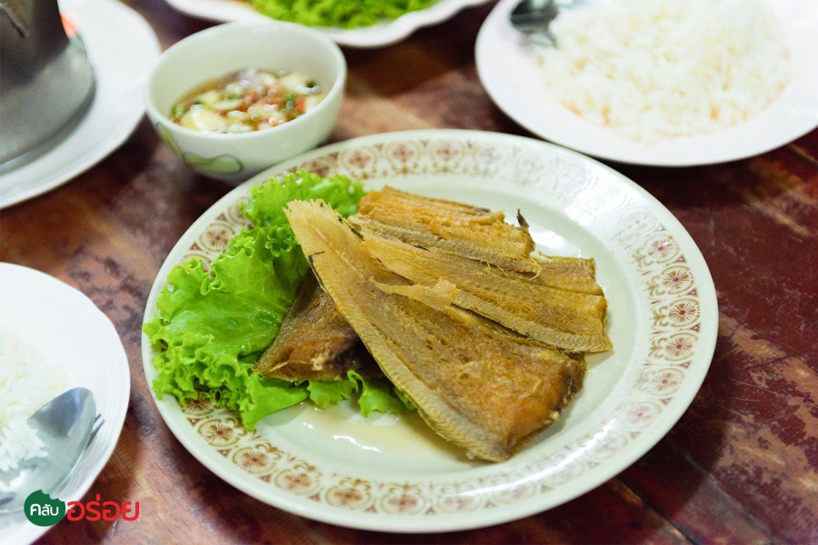 - ปลาลิ้นหมาทอด คือของนิยมของคนถิ่นนี้ ปลาทอดร้อนๆ กลิ่นหอมเป็นเอกลักษณ์จิ้มคู่กับน้ำปลาพริก ติดตรงที่ก้างจะเยอะไปหน่อย แต่รับประกันว่า อร่อย..ติดใจ