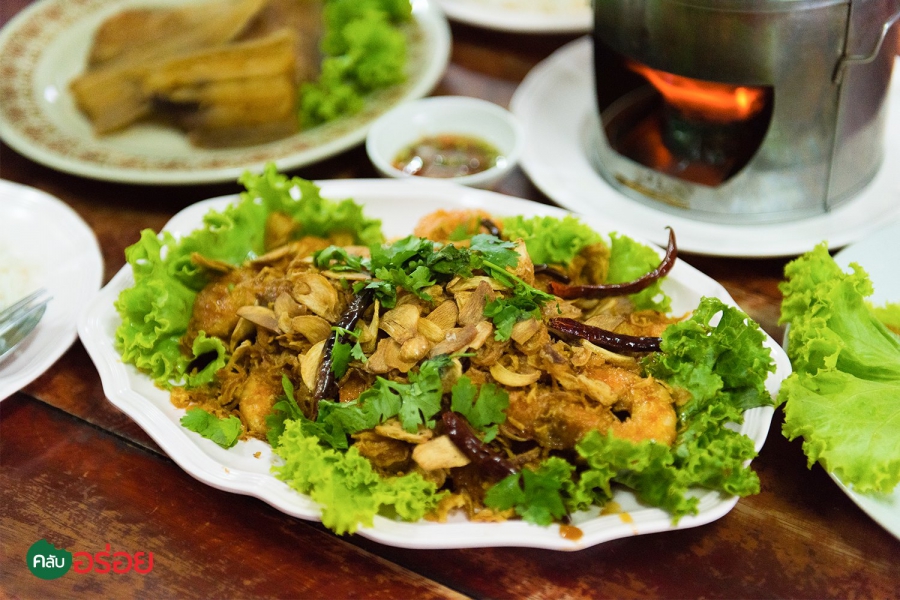 - อาหารของที่นี่จานยักษ์มาก กุ้งกรอบตัวโต เนื้อแน่น ผัดเคล้าเข้ากับซอสมะขาม แล้วราดตามด้วยซอสเปรี้ยวหวาน เพลินปากอย่าบอกใคร