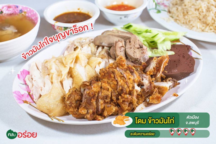 ร้านข้าวมันไก่ยอดนิยมของชาวลพบุรี ร้านนี้ทีเด็ดอยู่ที่น้ำจิ้มเต้าเจี้ยวสูตรเฉพาะไม่เหมือนใคร รสชาติเผ็ดร้อน หวานขิงที่ผสมในน้ำจิ้มมาแบบแน่นๆ เข้ากันดีกับเนื้อไก่นุ่มๆ ใครชอบเนื้อไก่แบบฉ่ำๆ หน่อย ขอแนะนำว่าให้สั่งเนื้อส่วนสะโพกรับรองว่าถูกทางแน่นอน ที่น่าประทับใจอีกอย่างคือข้าวมันและน้ำซุป ที่มีกลิ่นหอมๆ และเผ็ดร้อน ของ ขิง ช่วยชูรสให้ข้าวมันไก่ของที่นี่อร่อยเป็นเอกลักษณ์ ไม่เหมือนที่ไหน แถมเจ้าของร้านก็ยังใจบุญ คนท้อง และ คุณลุง คุณป้าที่อายุเกิน 70 ปี ทานฟรี ! เจ้าของร้านแกจะชอบฟังเพลงร็อคสักนิด ใครขาร็อคกินข้าวมันไก่ ฟังเพลงที่แกเปิดไป รับรองว่าได้บรรยากาศไม่เหมือนที่ไหนครับ !