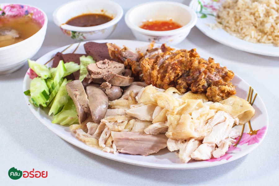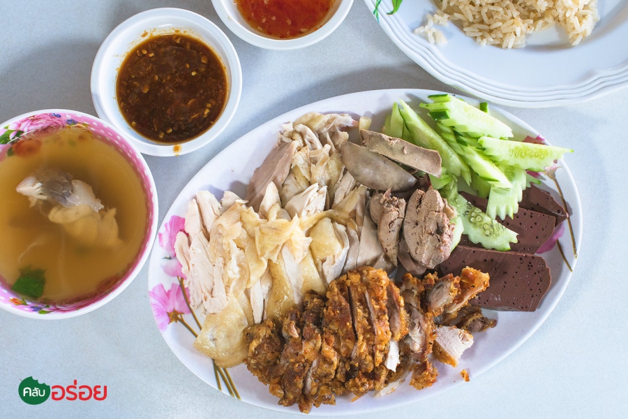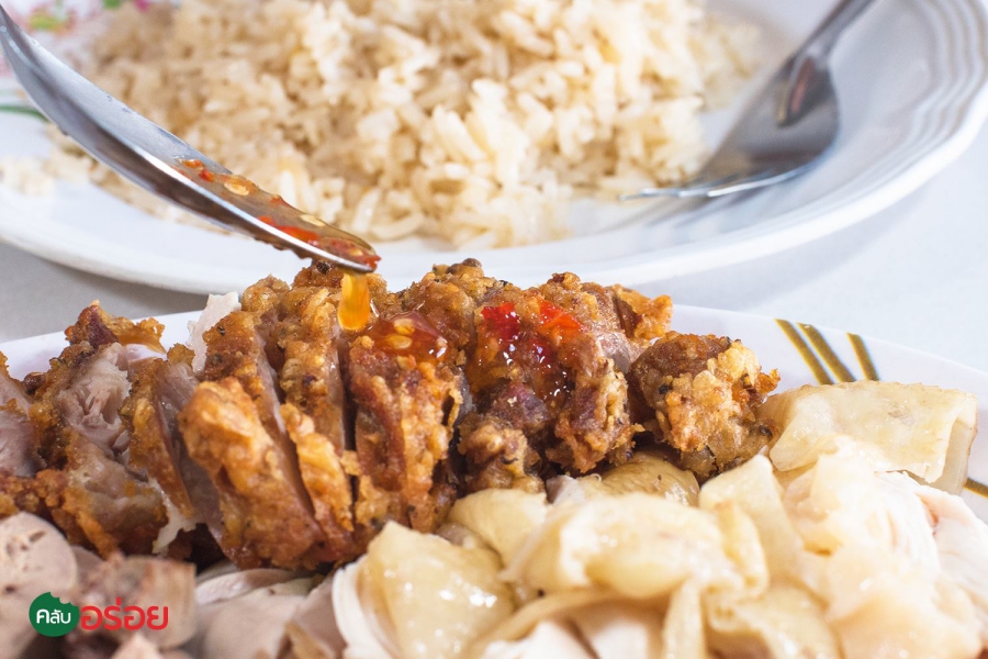 ข้าวมันไก่ผสม (ต้ม+ทอด) ทานคู่กับน้ำซุปต้มกระดูก