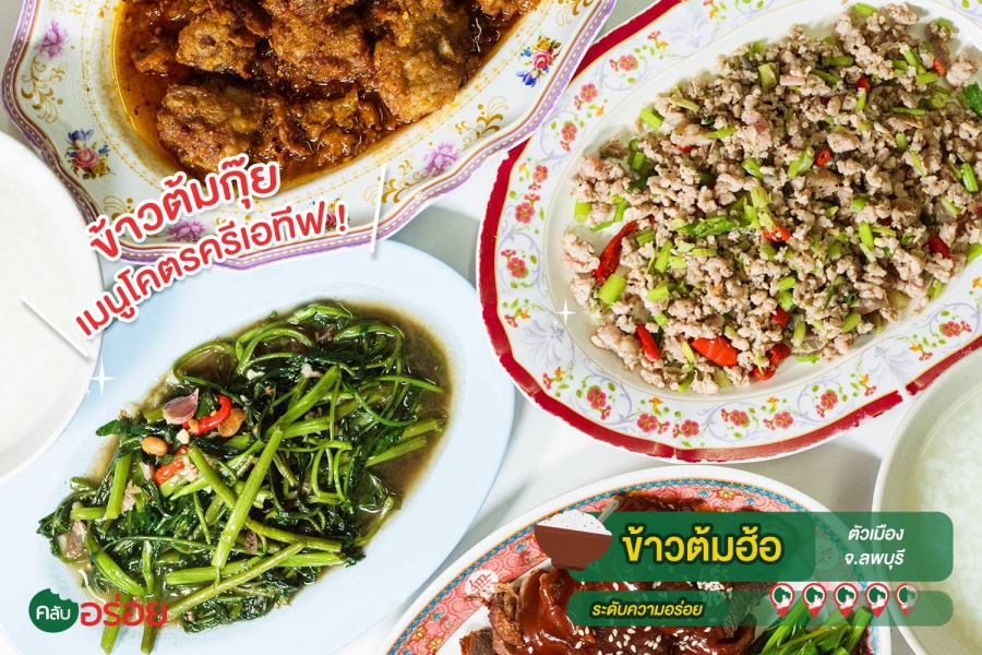 สภาข้าวต้มเจ้าดั้งเดิมประจำเมืองลพบุรี ร้านนี้ไม่ใช่ข้าวต้มกุ๊ยธรรมดาๆ แต่เป็นร้านข้าวต้มที่มีเมนูโคตรครีเอทีฟ คือ ทั้งอร่อย เมนูแปลกใหม่ ยกให้เป็นสุดยอดแห่งร้านข้าวต้มกุ๊ยที่มีเมนูสร้างสรรค์ ถูกใจคนทุกเพศทุกวัย และไม่เหมือนที่ไหน เมนูแนะนำคือ เป็ดยอดผัก เป็ดย่างกรอบแบบแห้งๆ ทั้งตัว ก็ว่าหอมอร่อยแล้ว เมื่อทานคู่กับซอสมะเขือเทศ งาขาว และ ผักกวางตุ้ง ที่โรยหน้ามายิ่งเข้ากันเป็นปี่เป็นขลุ่ย อีกเมนูที่พลาดไม่ได้คือ หมูสับผัดปลาเค็ม ปลาเค็มสับมาแบบเนียนๆ ผัดคู่กับหมูสับ เวลาทานด้วยกันจึงไม่เค็มเกินไป ยังได้รสสัมผัสของหมูสับนุ่มๆ ที่มีกลิ่นปลาเค็มเจือบางๆ ตัดกับรสเผ็ดของพริกขี้หนูสวน เข้ากันดีกับข้าวต้มในอากาศเย็นสบายๆ แบบนี้ครับ