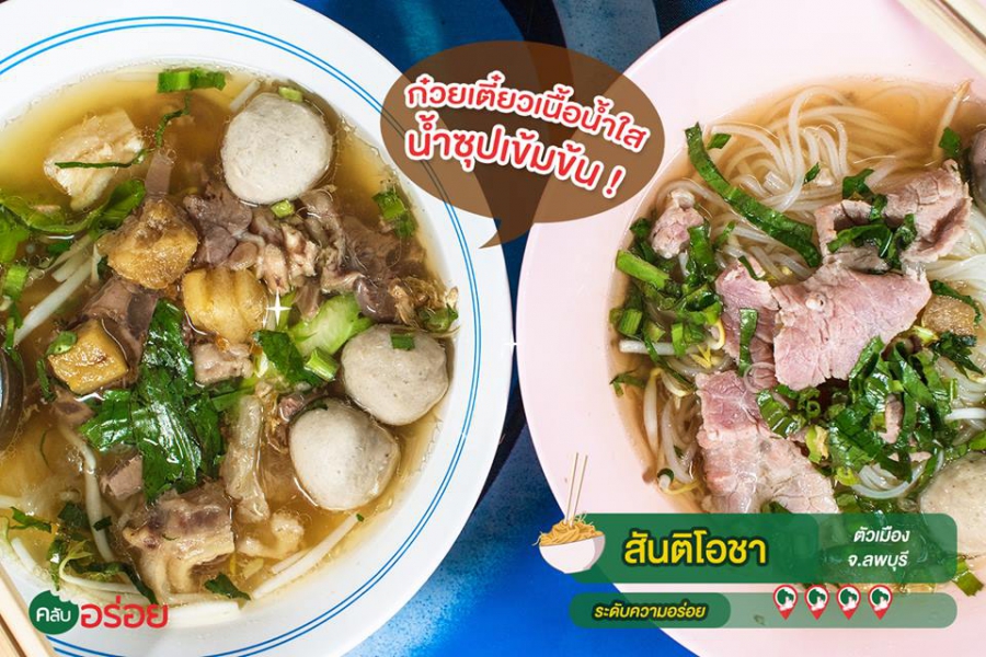 ร้านก๋วยเตี๋ยวเนื้อเก่าแก่ ใจกลางมืองลพบุรี จุดเด่นของร้านนี้อยู่ที่น้ำซุปต้มกระดูกรสชาติเข้มข้น แม้จะเป็นก๋วยเตี๋ยวน้ำใส แต่รสชาติของน้ำซุปกลมกล่อม หอมอร่อย เป็นเอกลักษณ์ไม่เหมือนที่ไหน ซดเข้าไปคำแรก ต้องบอกว่า คุณหลอกดาว ! เพราะน้ำซุปรสชาติไม่ใสไปตามน้ำ แถมเนื้อสดยังนุ่มอร่อย เครื่องเคราอย่างลูกชิ้นก็ถือว่าใช้ได้ เป็นร้านที่แวะฝากท้องยามมื้อกลางวันรับรองไม่ผิดหวังครับ